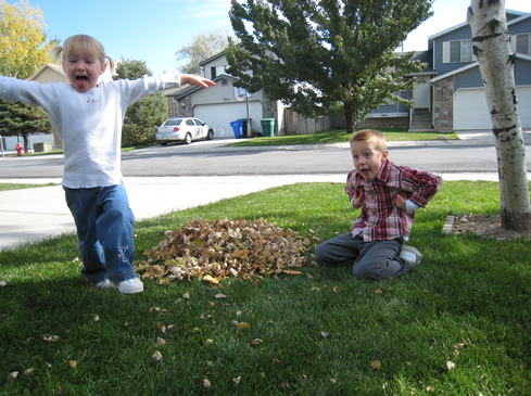 The kids have been so cute this fall! They wanted to jump in the leaves... only at this time we didn't really have a lot on the ground yet. Damon & Kylie worked together to get this "big" pile and were jumping into them. They're so creative together and play so well together.
