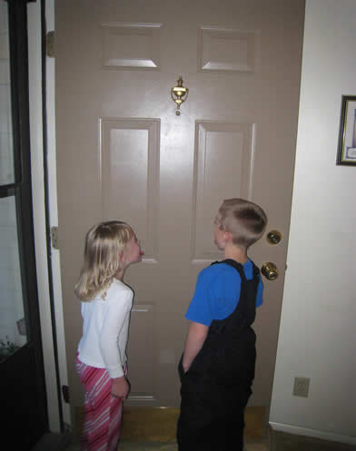 I've been wanting to update our little home with some cute styles. The only thing I've dared to do so far is the front door. This was a mother daughter project since I have Kylie home while Damon's at school I thought it would be fun to have her help me. Kylie chose the Milk Chocolate color and Bob teased that the kids would want to lick the door if she picked that color. I think the door turned out.
